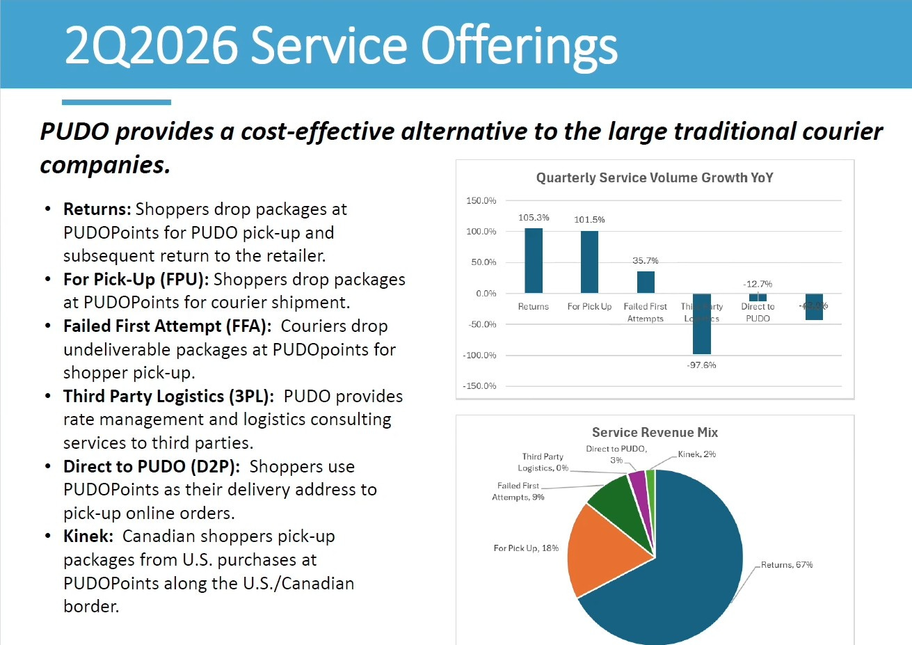 Pudo is a $10M market cap company trading on the CSE and their name is an acronym for Pick-Up, Drop Off. They provide e-commerce retailers with a low cost, convenient returns solution.