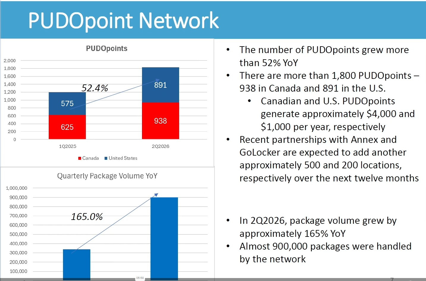 Pudo’s network has also grown by 52% YoY with another 700 locations coming in the next twelve months due to new partnerships. There is also quite the disparity between revenues generated from Canadian and US locations. That is currently due to the limited number of services offered in locations based in the USA, but additional services are being rolled out south of the border as well.