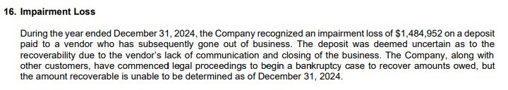 Their balance sheet is decent, but their cash flow does stand out with over $2.6M in operational cash burn thus far in 2025. This is caused through working capital adjustments and specifically through deposits against future inventory deliveries. This specific account could really be a bellwether into the company’s future revenue performance (also explained in the video below).