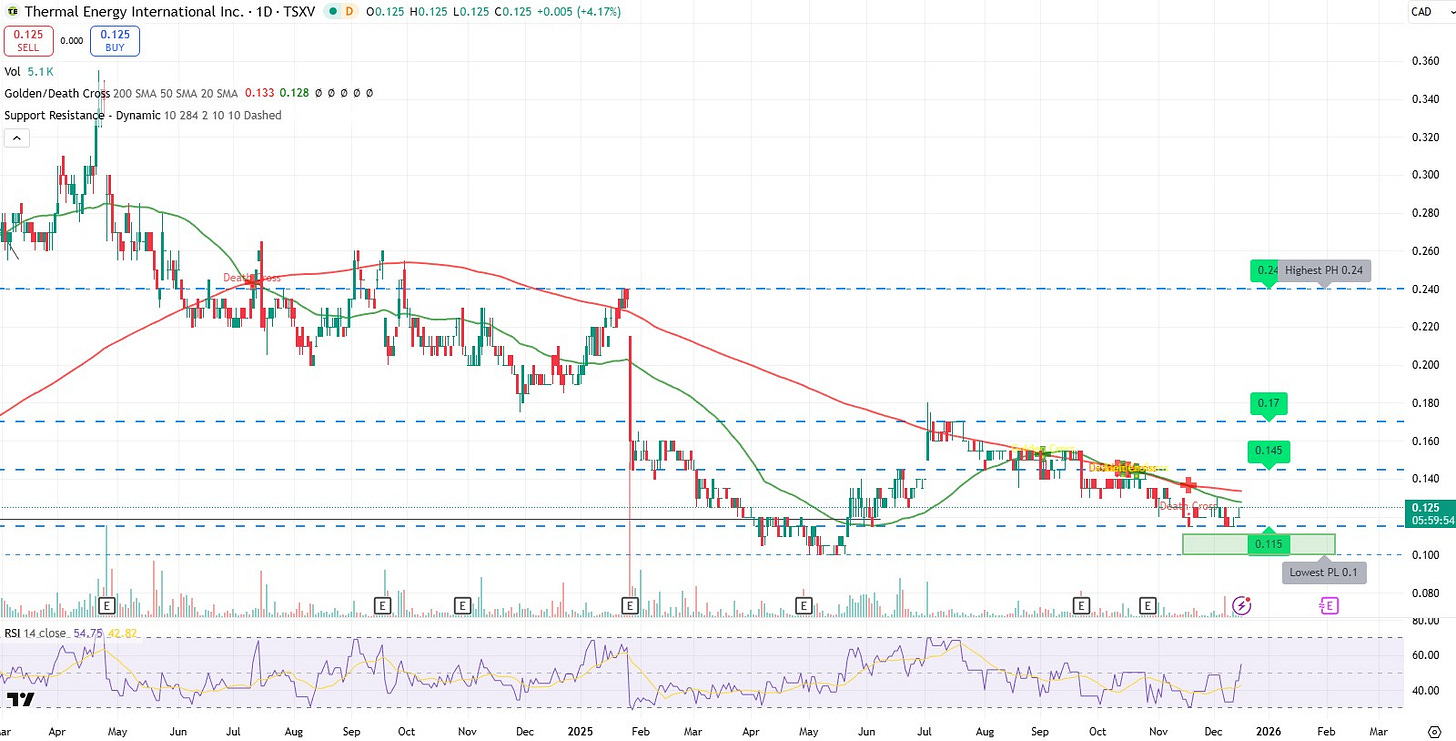 I was hoping for the opportunity to potentially get back into TMG under 12 cents as the tide feels like it may be turning to the upside. They are still up against a tough second quarter when they report in late January. I will look for that dip opportunity again around that time, as the balance of 2026 will see the company up against much softer and beatable numbers.