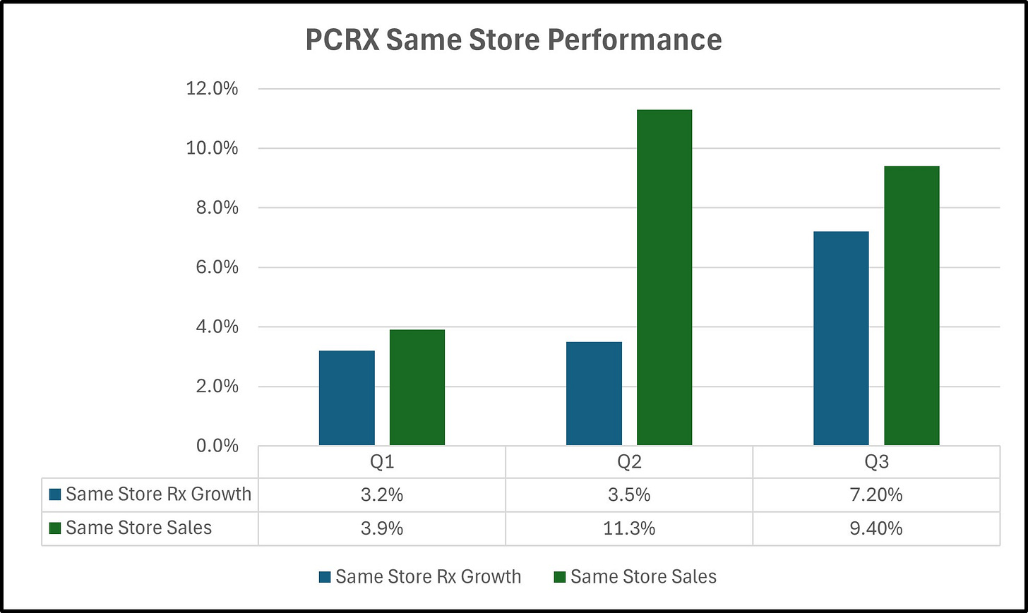 One of the things that caught my eye with PCRX was what they can do with pharmacies post acquisition. Pharmacists are not merchants and I don’t think anyone would expect them to be. This is where an experienced leadership can take charge optimize the store on a number of fronts, from merchandising to buying to operations.