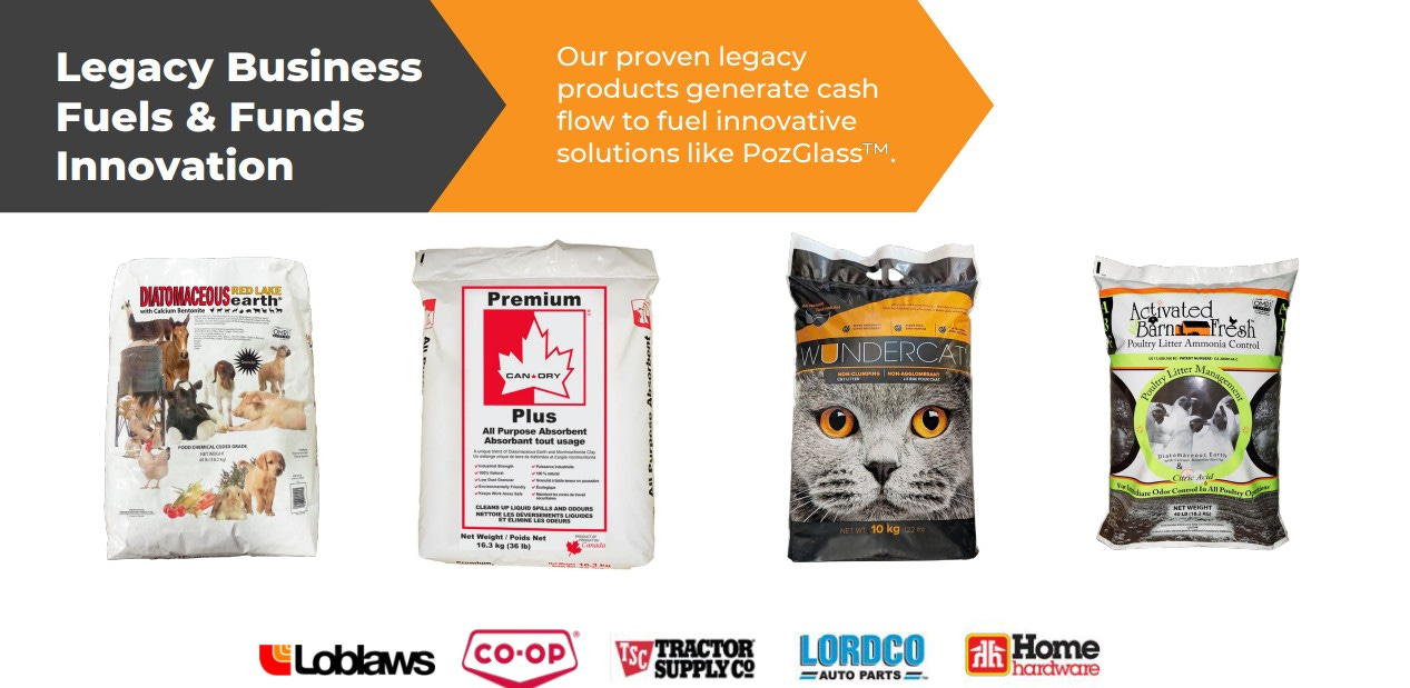 Established partnerships with large North American manufacturers. In this case, Lafarge (now Amrize) who has committed to buy up to 3500 tons of PozGlass per year.
