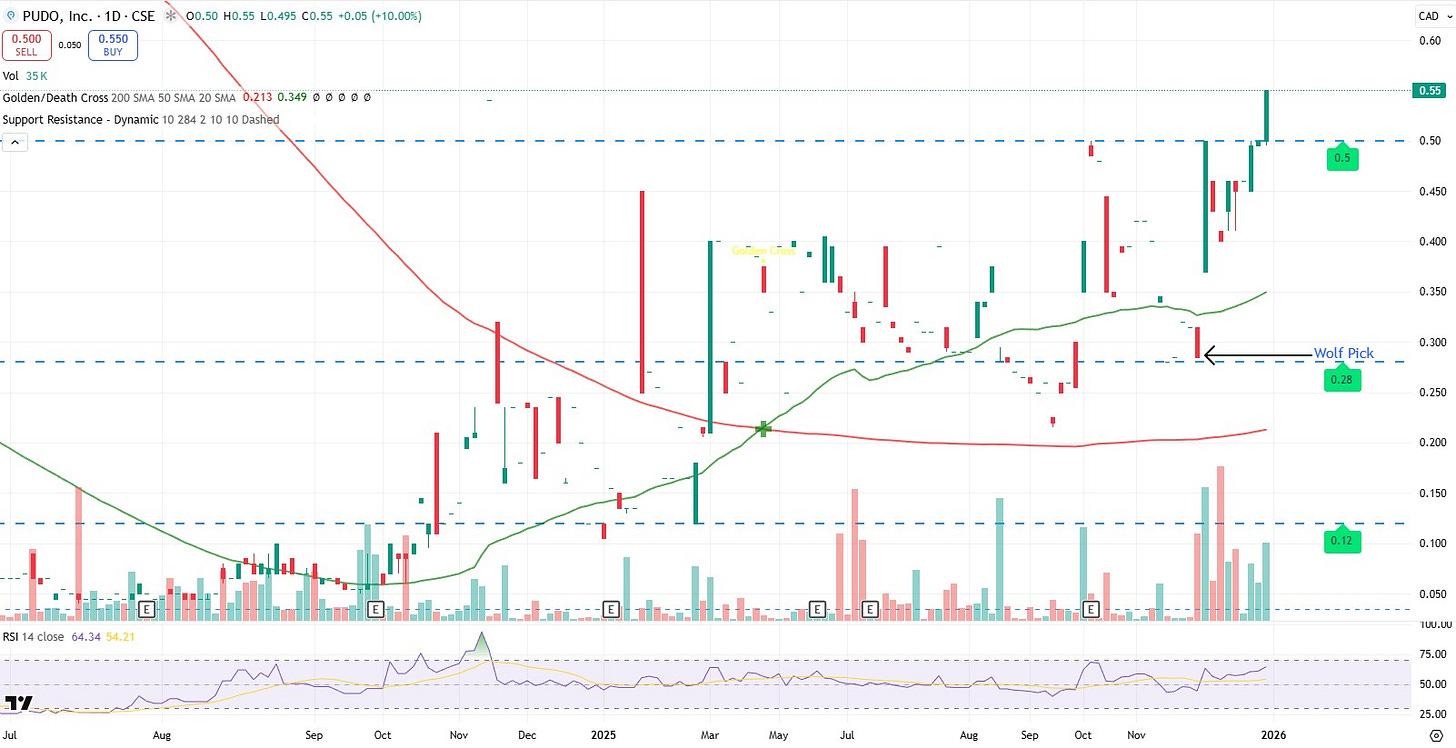 Similar to the two 2025 Wolf Picks that were acquired in the previous month, that outcome could provide the best return, and it certainly seems Pudo is building themselves into an acquisition target.