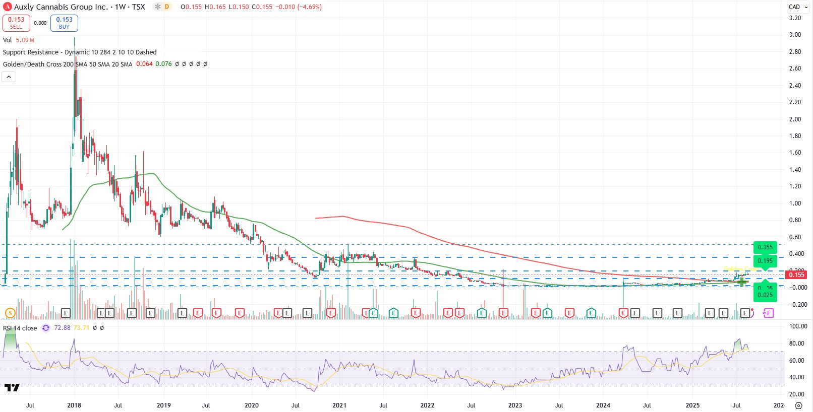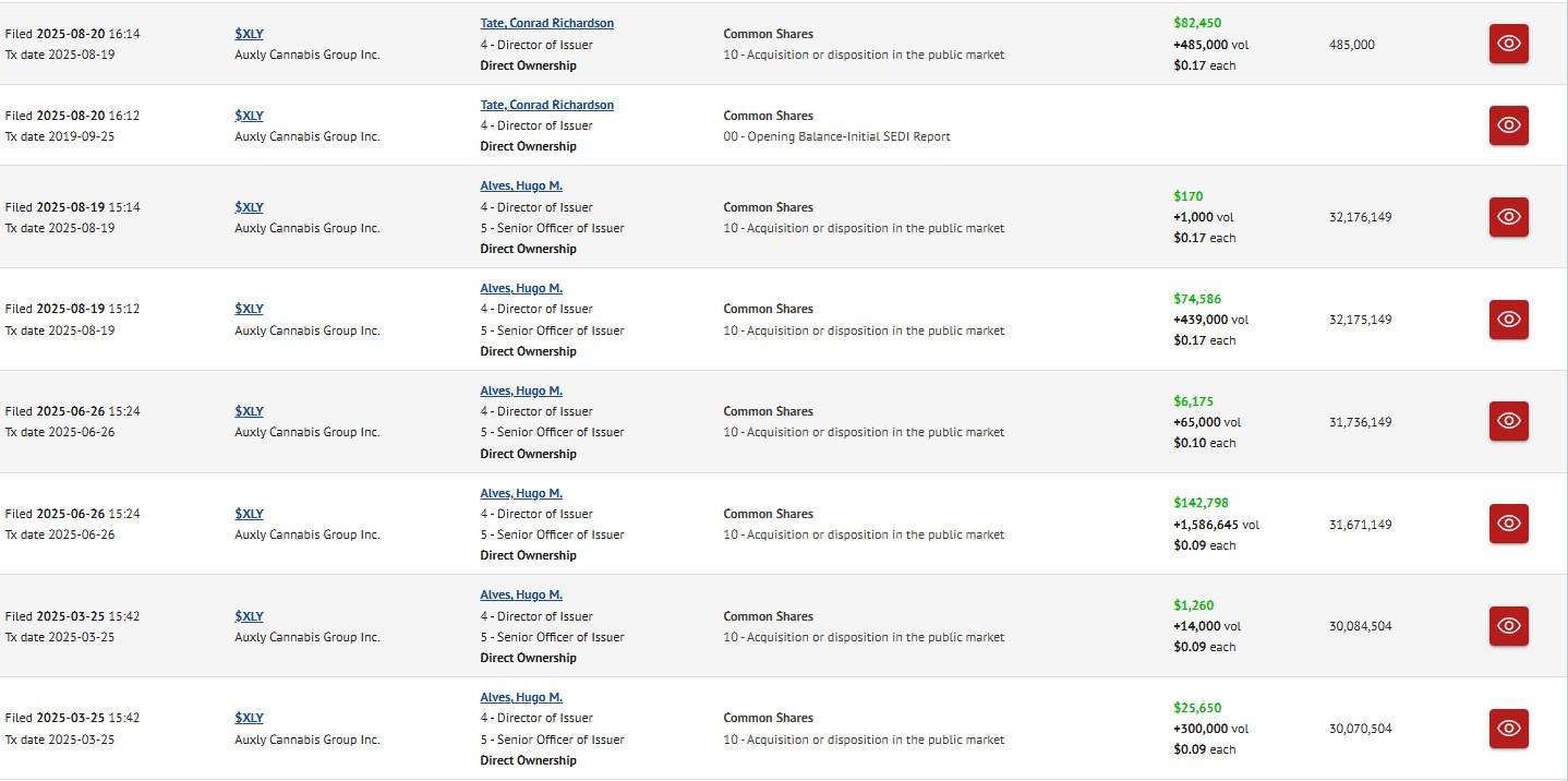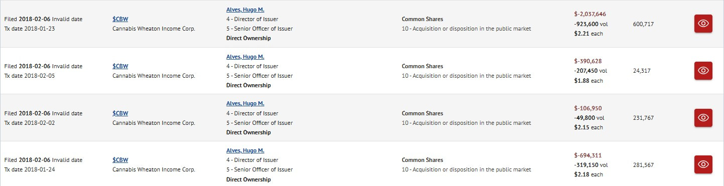 Also, four months prior to the name change to Auxly Cannabis, the CEO peeled off over $3.2M worth of shares when it traded as Cannabis Wheaton Income Corp. So I’m pretty sure he’s still sitting well ahead in the grand scheme of things.