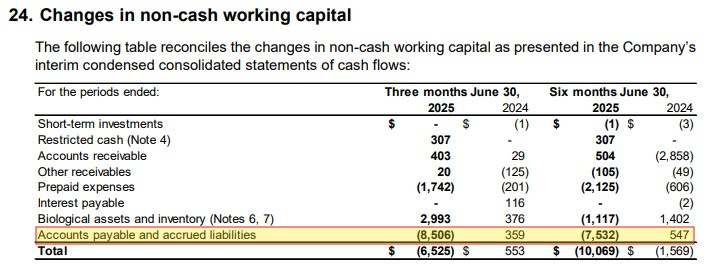 Through six months, Auxly has produced $5.6M of operational cash flow (OCF), over 8 times the $891k delivered at the same time last year. That includes $3.6M generated in their last quarter. What is also interesting is that includes a rather large negative impact of working capital adjustments to their OCF - mainly from significantly paying down their A/P.