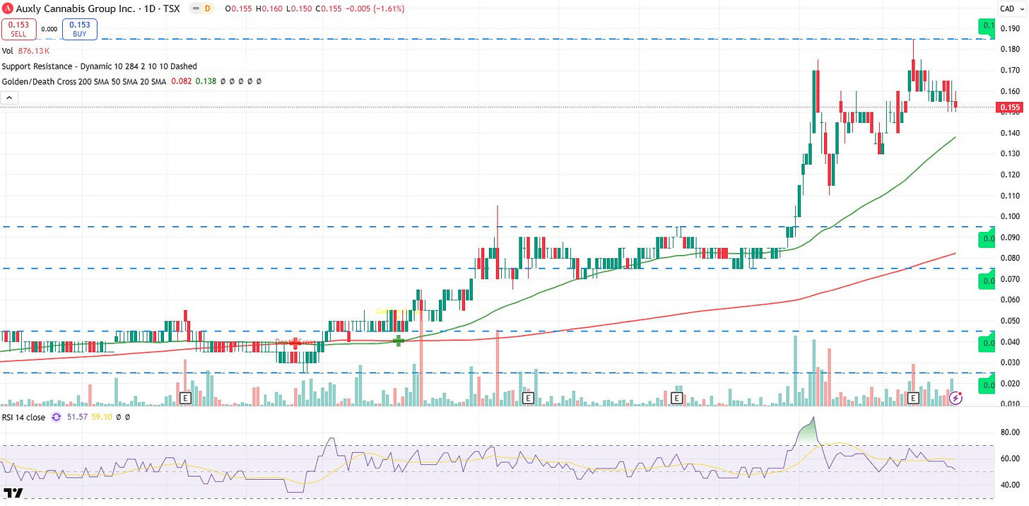 This is my first formal look at Auxly, and the one thing that stands out is their consistency across the last five quarters. Revenue growth in all five were well into the double digits with four of them over 25%, and all profitable on the Net Income line.