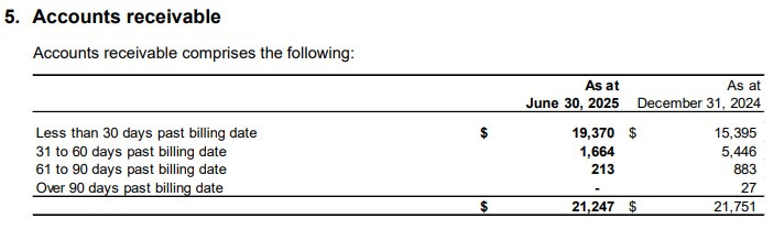 In terms of other balance sheet items, their A/R looks quite strong in terms of their aging report with 91% listed as current, also much improved from the start of the year.
