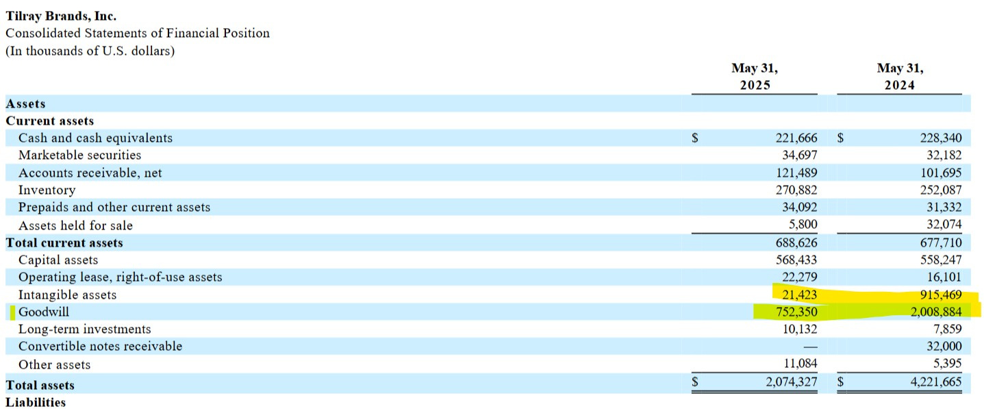 Another apparent differentiator within this space is the quality of their assets. They’re real actual TANGIBLE assets. They do not have a bullshit book value due to previously overpaid, shitty acquisitions which generated inflated goodwill and intangible asset values. I’m looking directly at you Tilray who wrote down another $2.2B (yes with a B) in 2024 who also reported yesterday. Imagine if you invested in Tilray’s based on their price to book value in May of 2024?