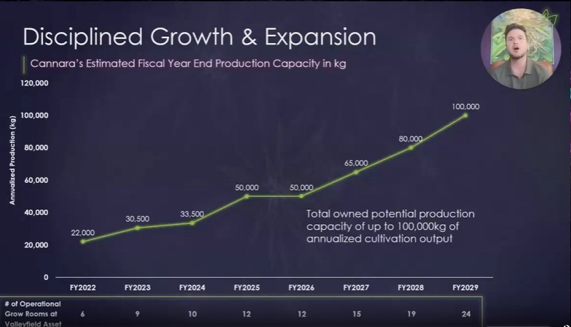 Well, in terms of production metrics, shortly the company will have 50% more production capacity than they did just eighteen months ago and expect that to double by 2029 all through the addition of grow rooms at their Valleyfield, QC facility.