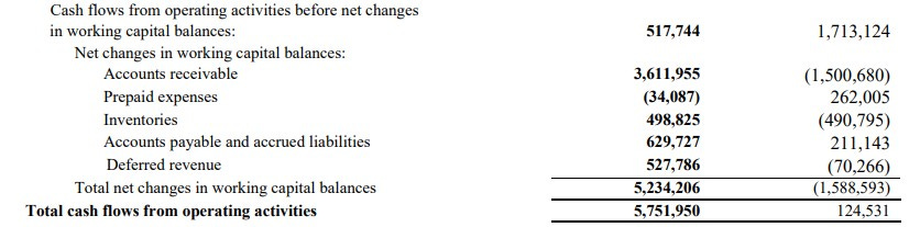 Massive operational cash flows in the quarter with over $5.75M generated in Q1, which is over 46x more than they generated in the comparable quarter.