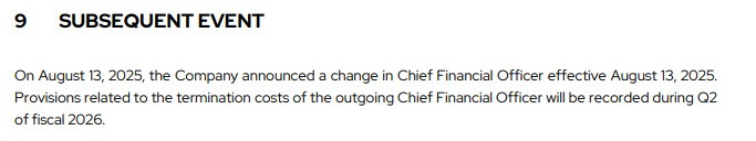 Note that there will be similar restructuring costs next quarter as the company also made changes at the CFO position which were announced last night.