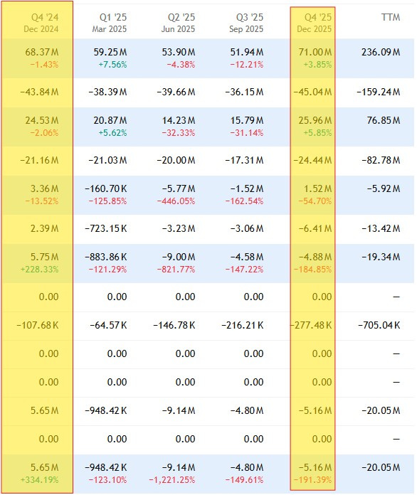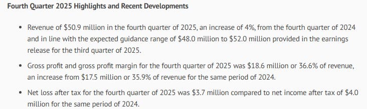 Let’s be generous and call their 2025 operational cash flow as neutral. The final results show operational burn of $192k for the entire fiscal year. By comparison it’s a very disturbing three year trend of $14.8M in OCF in 2023, achieving less than half of that total in 2024, and then moving to slightly negative this past year.