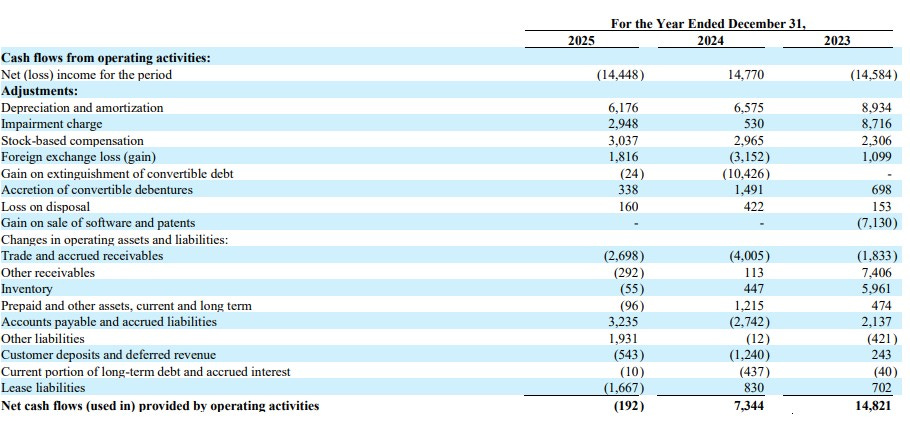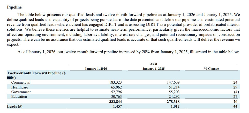 Dirtt also spend a net of $3.7M in asset spending during the year, and repurchased $4.4M shares. Overall their total cash position depleted by 30% during 2025.