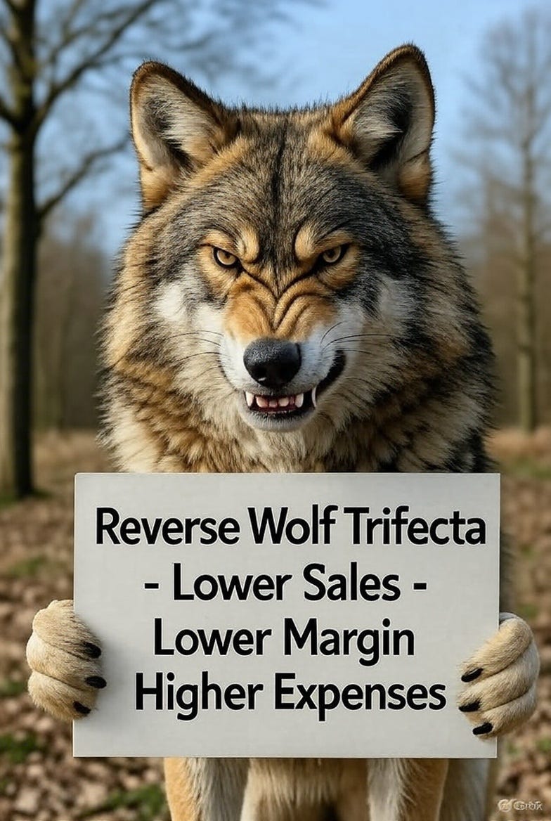 The story isn’t better on the margin line which decreased by over 400 basis points to 32.8%, so on 3.1% less revenue, contributed 13.9% less gross profit dollars. To complete the reverse Wolf Trifecta, operating expenses increased by over $6.5M or 11% more than 2024. $3.8M of those additional expenses to the year prior did come from reorganizational costs. As you can see below, reverse Trifecta’s make for an unhappy Wolf.