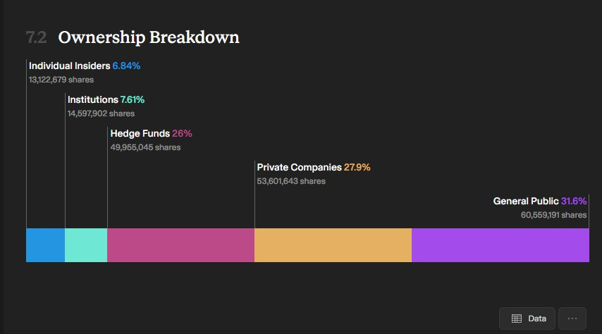 Ownership breakdown below with under 1/3rd held by retail (per SimplyWallSt)