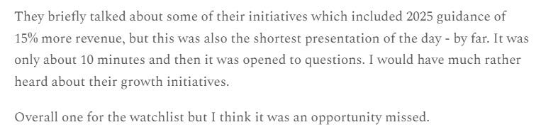 The first was after sitting through their presentation in Las Vegas last spring. It showed some positive guidance and some flashy numbers. Unfortunately I found their presentation lacking something. No meat.