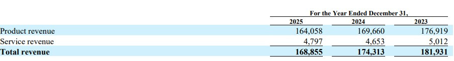 Revenue decreased by 3.1% during 2025 to $168.9M, down from $174.3M. That is after a 4.2% drop the previous year from $181.9M. That revenue decline came after an across the board 5% hike on all orders in the final three quarters of the year. The company’s three year revenue history is shown below: