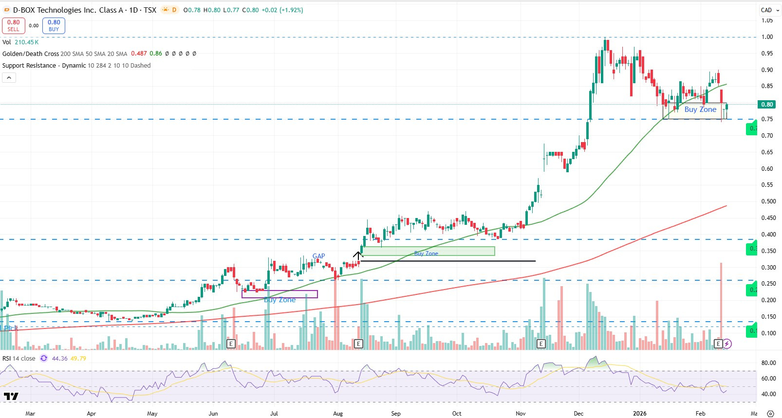 The only solid Buy Zone last month came from one of my favourites, D-Box Technologies, and even they disappointed the market, dropping by 9%. That did drop them back in my buy zone however, and I acted on it twice last week at 75 cents. It was very encouraging to see insiders buy at 80 cents on Friday.