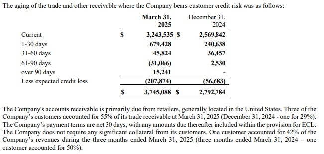 Fresh’s receivables are 87% current with very little beyond 31 days which looks relatively healthy, but they are anticipating taking over $200k in A/R losses in 2025.