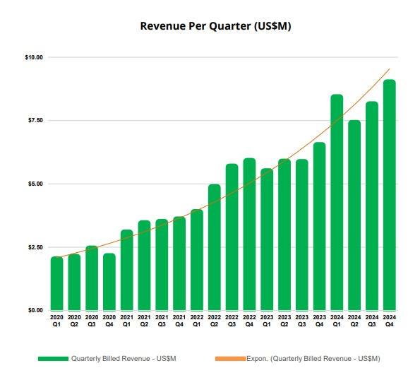 So they have been growing the business at a nice CAGR and have delivered profitability to their shareholders in two of their most recent three quarters although their net income is still ($1.2M CAD) on a TTM basis.