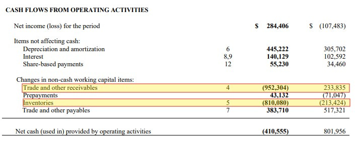 No red flags on the balance sheet but I wouldn’t call their liquidity stellar and the 50% jump in inventory is noticeable and will likely negatively impact cash flows in our next section.
