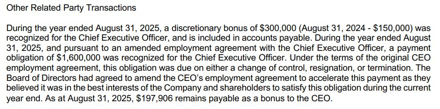 Now let’s get into the CEO’s compensation over the past couple of years, particularly surrounding the bonuses paid out over the past two years which totaled $3.17M. Those payments were granted during a time when the combined net loss over two years was $1.07M and represented 154% of the company’s operational cash flow over two years with $1.7M in bonuses still to impact their 2026 fiscal year. If the board could award those after two declining net income years, what bonuses will investors be looking at on improved results?