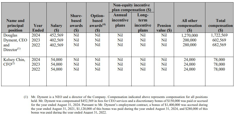 The CEO, Doug Dyment sold half his stake at $1.60, interestingly just days after the company released their annual information circular.
