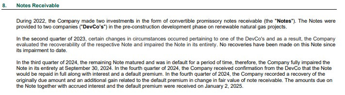 After writing off $1.6M last year for a note receivable (oh boy), they received those funds early this year.