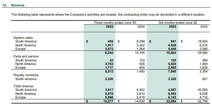 As mentioned the largest difference between the comparable quarter was the dramatic increase in gross margin, and that is a result of dramatic swings within their revenue segments with system sales over 50% down, with large increases in their higher margin parts and service revenue, and a one time royalty agreement payment of $3.3M which contained 86% margin.