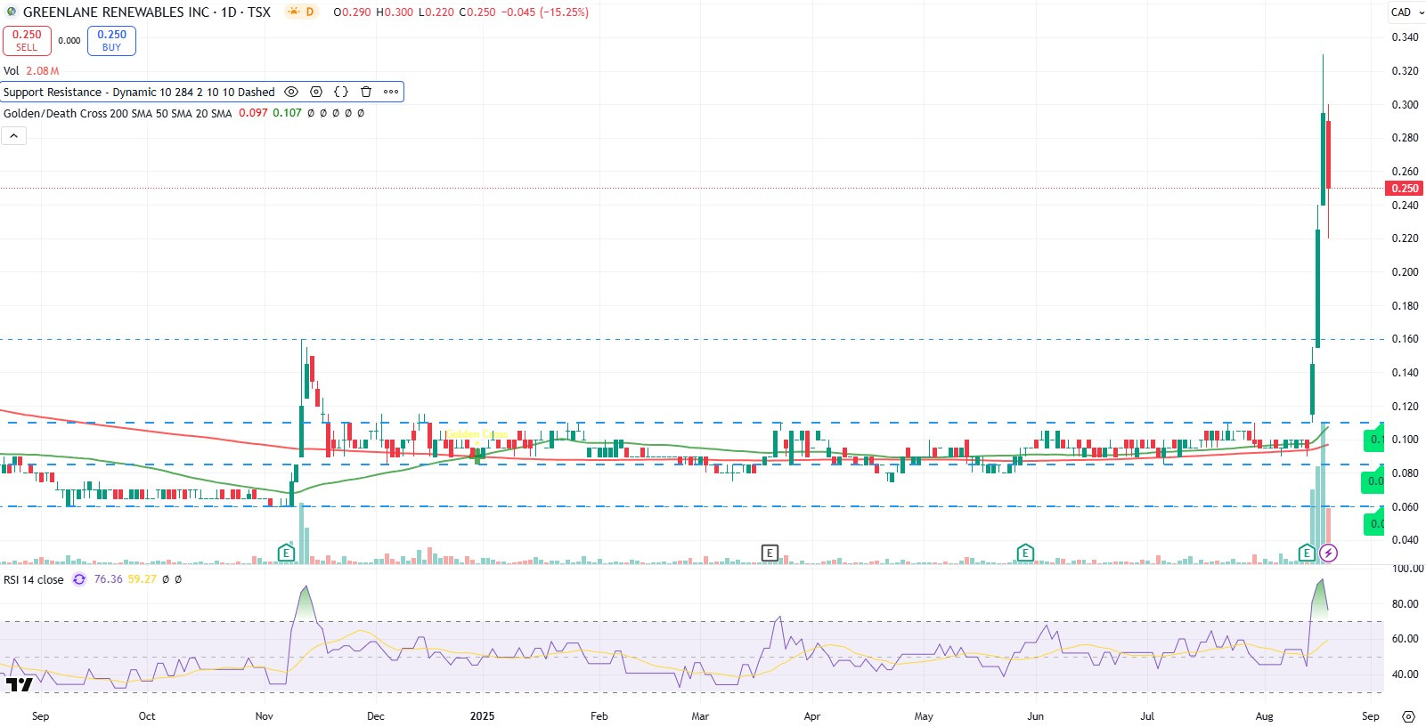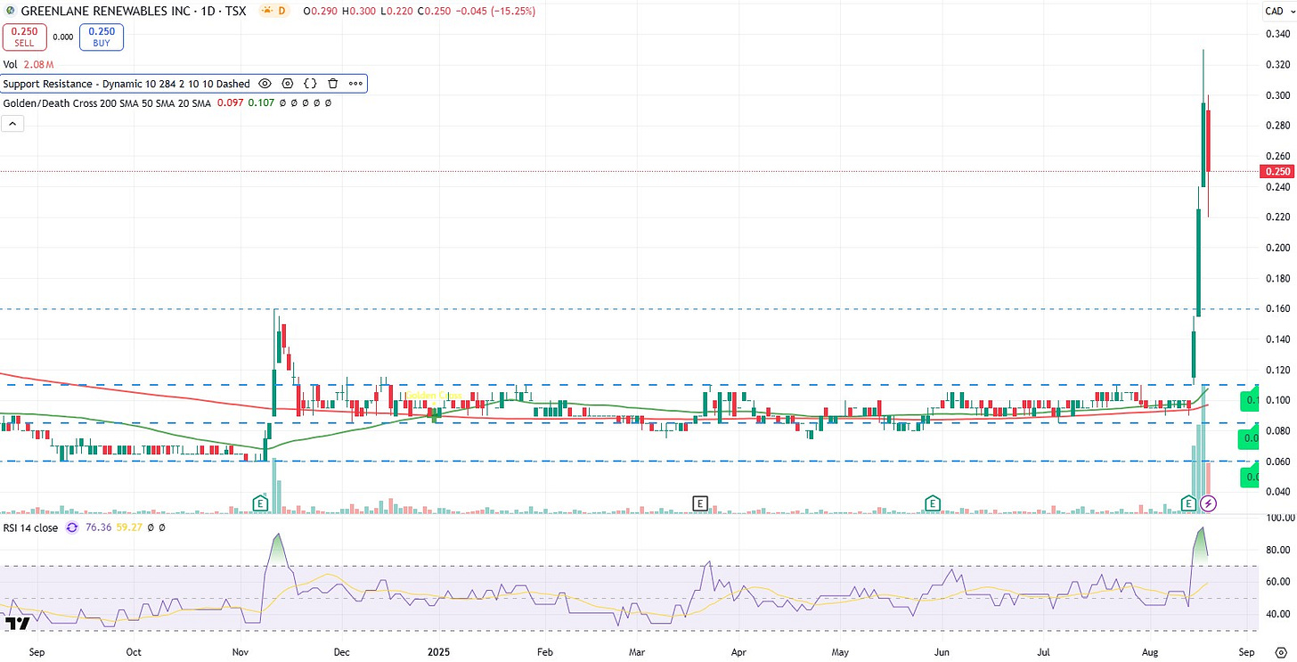 So when I was asked to review this about a month ago, I have to admit I had very little interest. But since the company released their financials last Thursday the stock went on a tear going from 9.5 cents to 33 in just three heavy volume trading sessions peaking at over 5 million shares traded on Tuesday. Yesterday was a large pullback to close at 25 cents - not unexpected at a Relative Strength Index of 94. To put that in perspective, Hydrograph (HG.C) one of the most talked about stocks over the past month only hit an RSI of 91 at its peak.