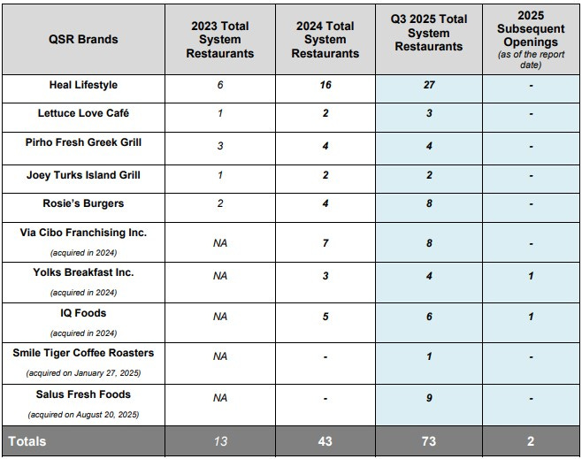 As of today, they are up to 75 opened establishments, 75% more than they ended 2024 with and nearly 6x from two years ago in addition to bringing on new brands. I’d like to take a snip of their subsequent news releases since their Q3 closed, but there are too many to fit into one image.