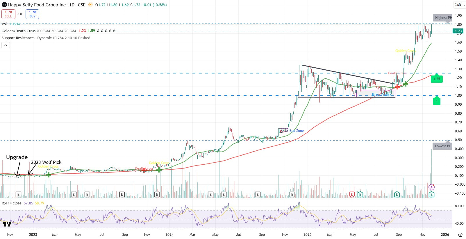 I’ve lost count now, but Happy Belly is my most reviewed stock of all time. You might think I’d be bored by this point, but how could one be on a chart that looks like this: