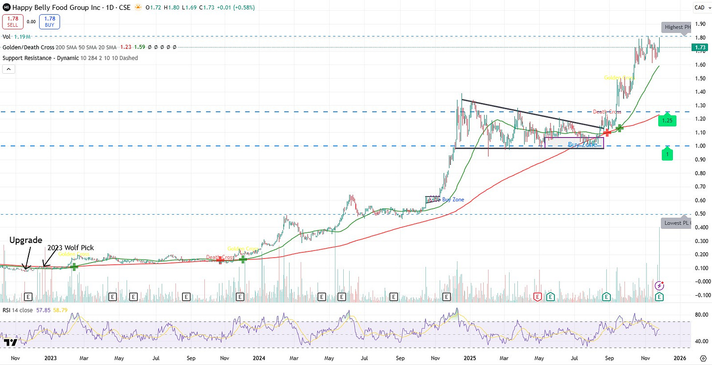 I was reviewing the company and holding shares well left of this chart too. As of today it’s a 22 bagger from that eight cent upgrade almost three years to the day ago, and it’s also over a 17 bagger from the 2023 Wolf Pick.