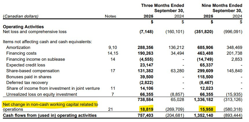 While minor, I didn’t like the investment in Purebread at the time and without it, we’d have positive net income here in Q3. It’s relatively small dollars but it was done at a time when the company was still raising capital. While the SP of BRED has multiplied since the valuation in these financials, the investment is still underwater and I don’t like their chances. I was thinking it, I said it, it’s peanuts in the grand scheme of things so let’s move on.