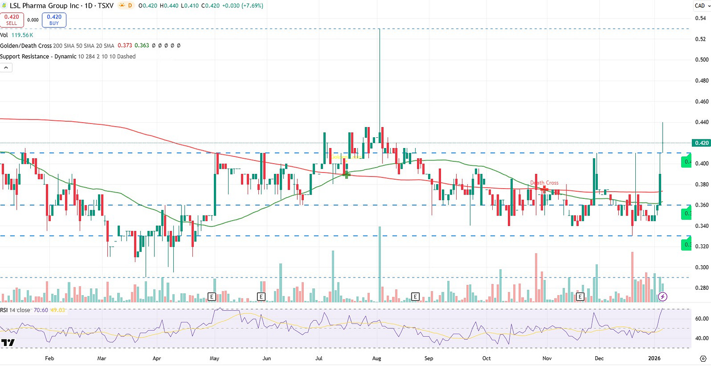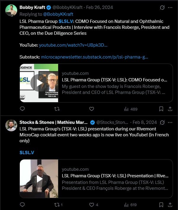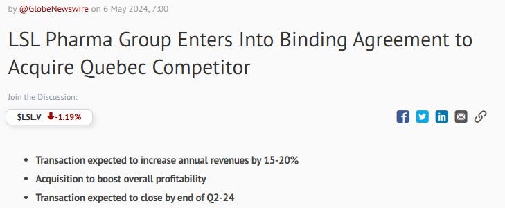 LSL Pharma, as the name would imply is a Pharmaceutical company, and they are located in Quebec. The last Quebec pharma company I recall covering and once holding a position in was Tetra Bio Pharma. I still possess some facial ticks from that experience as they went bankrupt back in mid 2023.