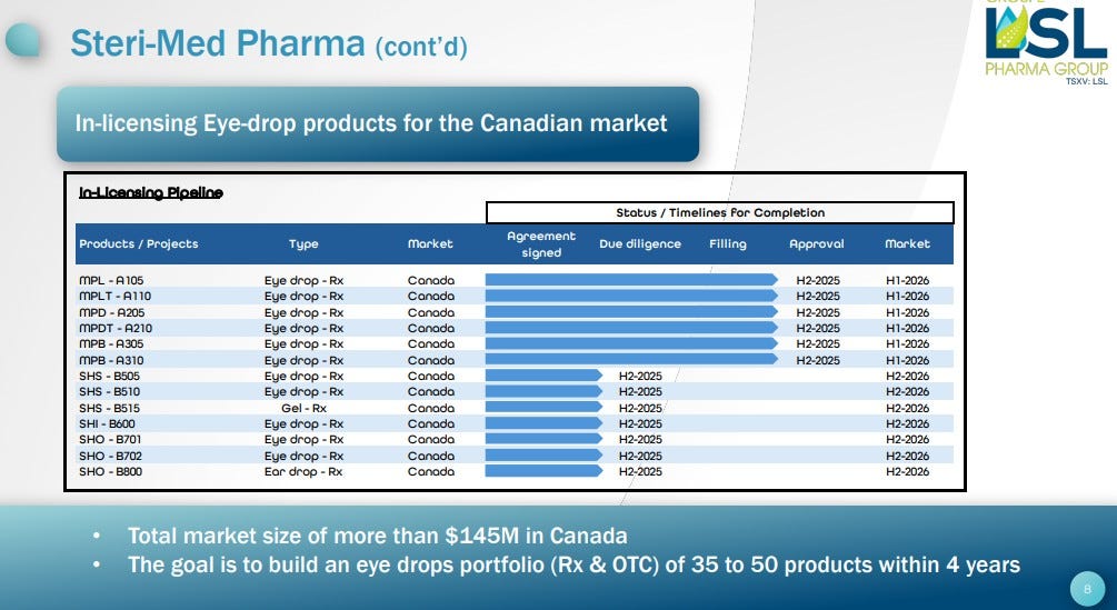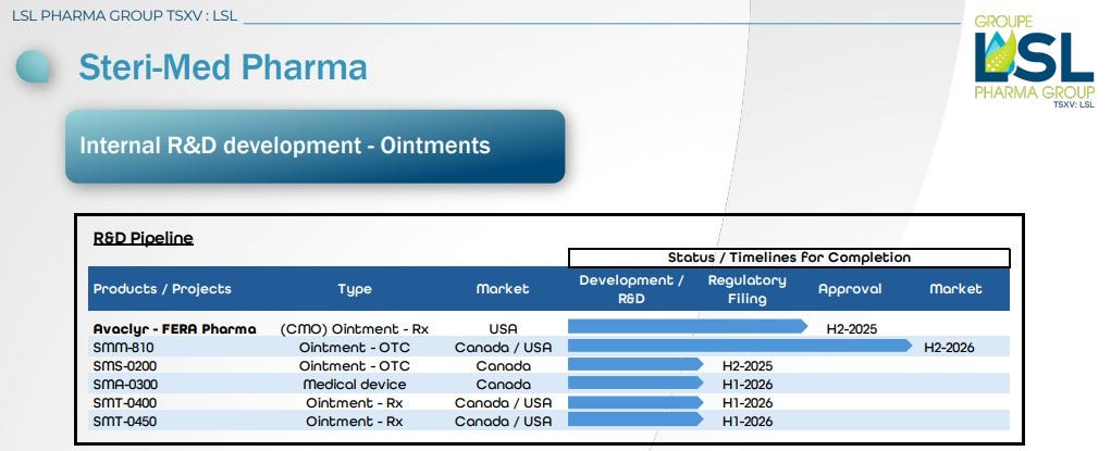 That brings us to the most recent, and largest of the four, Juno OTC acquired on Dec 23rd for a total purchase price of $5M. This purchase adds over 40 Health Canada approved OTC drugs, natural health products and medical devices to the LSL Pharma business with a 2026 revenue estimate of $25M. The seller who will remain within the business interestingly subscribed for $1.5M of the convertible debenture offering announced at the same time of the acquisition.