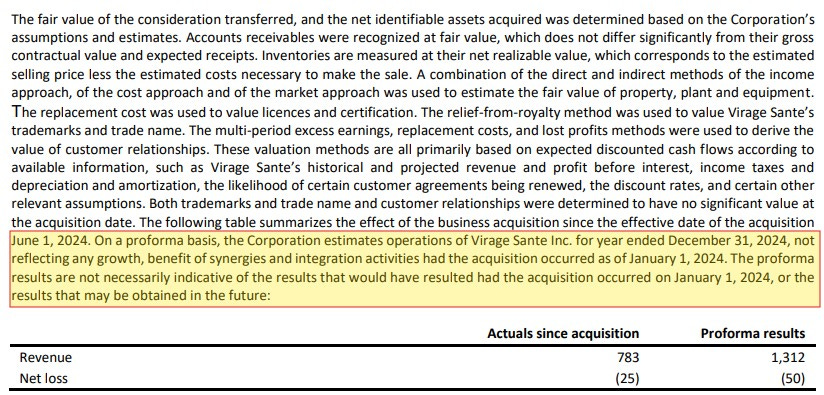 The Dermolab acquisition occurred near the end of 2024. This one appeared to be on the cheap with total consideration of only $1.2M for a company with net assets of $6.1M, therefore the company booked a one time gain on the acquisition of $4.9M (remember that figure).