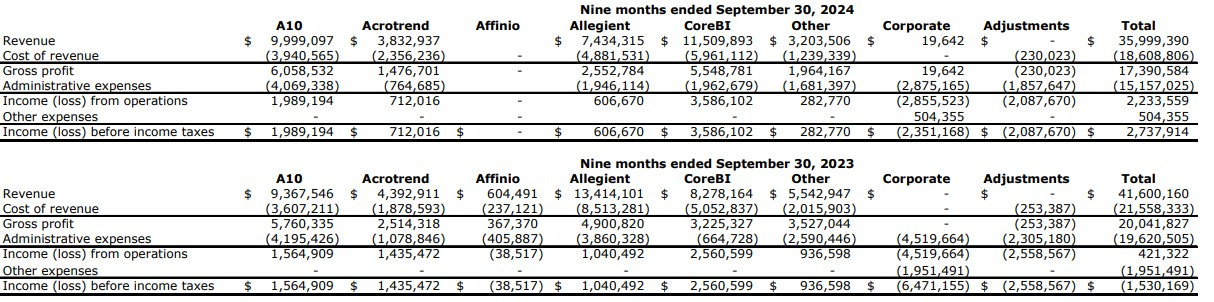 The overall P&L in terms of comparisons are tough with the sale of Affinio and Allegiant impacting last years numbers, and the fact that the company absolutely shit the bed in the final quarter of last year. So I’ll try to keep it limited to the numbers I think matter.