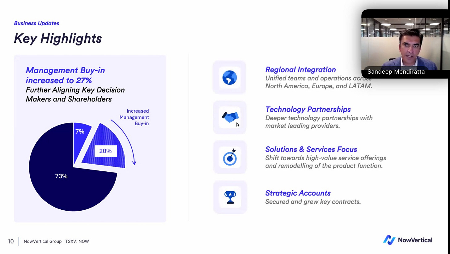 The highlighted section is what NowVertical could not achieve under previous leadership. It is why I gave up on them a long time ago, and is why I’ve deemed this stock as “dead to me”. Not only has new leadership started to execute on this, but they did it in a relatively short amount of time.