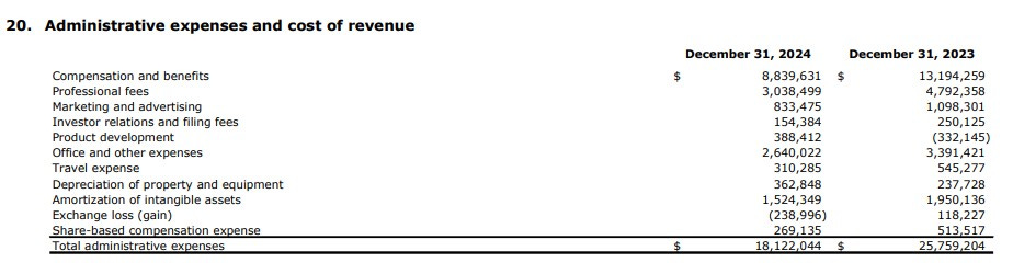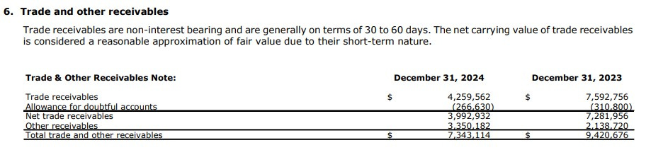 Overall the company finished the year with $200k or 7% less cash then they began the year with. Fairly successful overall, but the pockets will still remain tight through 2025 given the weak liquidity of their balance sheet and no more big assets to sell.