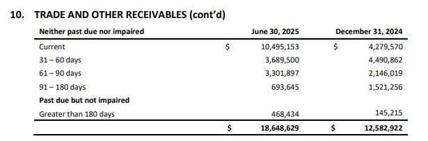 I feel like a bit of a broken record each quarter when I talk about NCI’s balance sheet. Continually improving ratios but one who’s liquidity continues to be questionable. At the end of Q2, NCI had a current ratio of 2.5 (2.3 at prior year end) that consisted of $2.2M in revenue, $23.3M in receivables and $900k in other short term assets over top of $10.7M in liabilities due over the next twelve months. Once again current ratio is more than adequate for a microcap of this size, but their A/R is up by 38% from their 2024 year end numbers and accounts for 88% of their current assets. Not ideal.