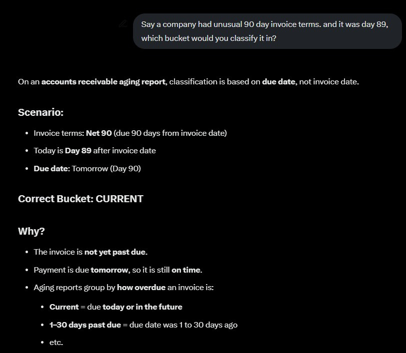 The formatting of their aging report doesn’t exactly due it for me either. If you have 180 day terms and there is a figure in 91-180 days that you deem as neither past due nor impaired, it should be in the “current” bucket.
