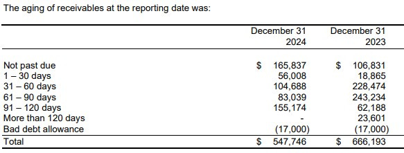 Even though company’s liquidity is strong, I would still like to see an aging report or at least more commentary within the financials regarding their A/R, particularly since the growth is about double their revenues. The company is capable of producing one as they did disclose one with their annual financials earlier this year. It looked like a dog’s breakfast to be frank with 70% of their receivables past due and that number was 85% the year prior. Do they list even terms on their invoices?