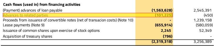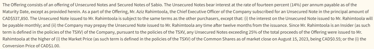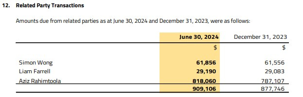 Next we have some yellow flags with related parties owing the company money. I find it very disturbing when I see a cash burning organization (or any for that matter) loaning insider company funds from the treasury. A $60k loan at 1% interest from more than two years ago. A $29k loan allowing an insider to exercise warrants over a year ago. And over $800k due from the CEO which in most part appears to be from participating in the convertible note raise. So he never actually paid the company the funds which were needed for operations, am I getting that right? Is he earning 14% on the note too? More than happy for the company to email me any clarification on that if I’m misinterpreting.