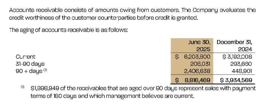 Also occurring during the first six months of 2025 were $5.5M worth of additional debt in the form of convertible debentures and $3M of that was used for the acquisition of Bio-Tech.