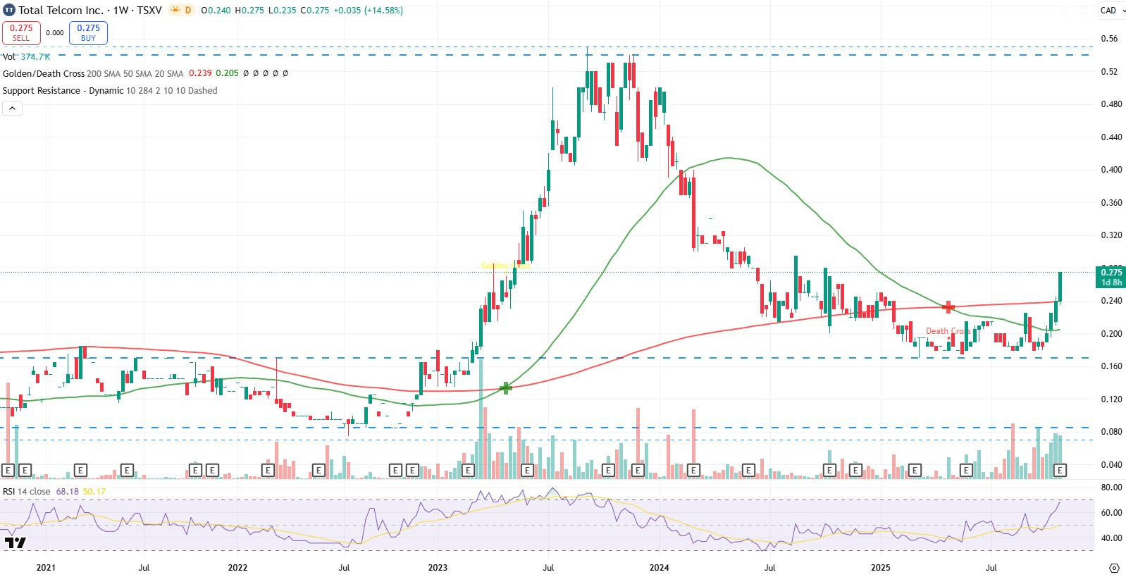 For the year Total Telcom is only up 6%, but it has risen by 53% in the last month. Their daily trading volume is also noticeably different in the past few months, although it’s hard to classify them as highly liquid with their largest volume day of 244k shares in the twelve months.