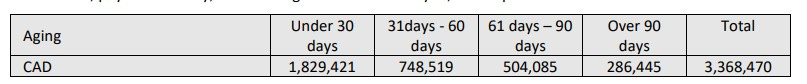 The quality of their receivables could look a lot better with more than 45% over 30 days, although there is no indication of what Volatus’ credit terms are.