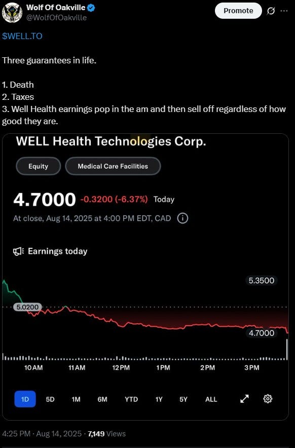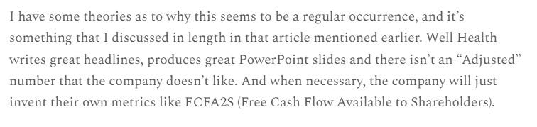 I’ve chronicled my love-hate relationship with Well Health on numerous occassions over the past few years so I won’t re-hash them here - I’m sure that will become evident as we move through this review.