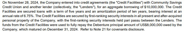 To help fund that Hope facility purchase the company raised a net $4.2M prior to that deal closing. The company also paid down their debt by $360k and made interest payments of $340k so far during the year.